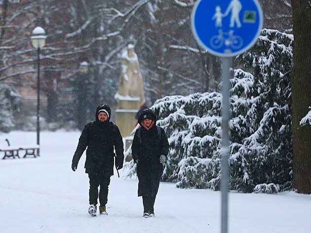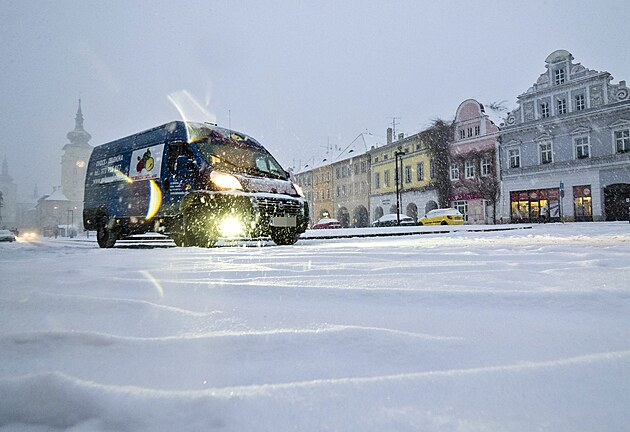 Sněhové a mrazivé počasí v Českých Budějovicích. (9. ledna 2026)