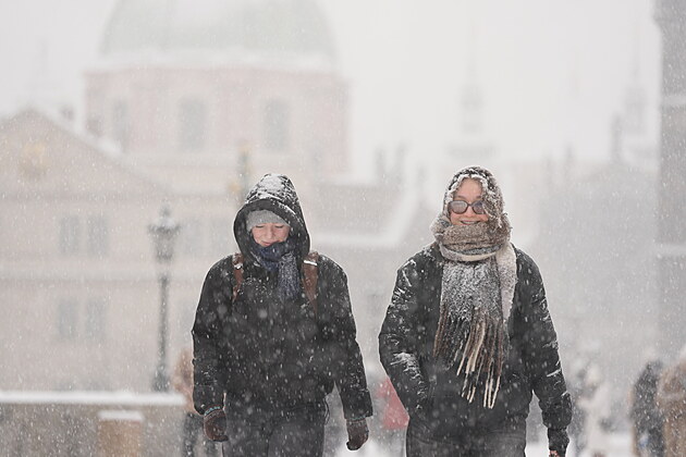 Sněhové a mrazivé počasí v Praze (9. ledna 2026)