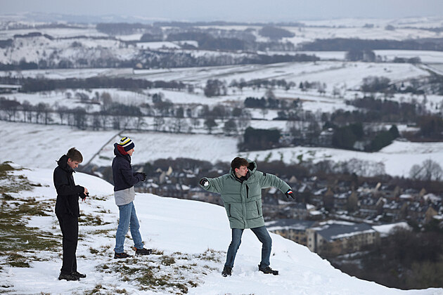 Lidé si užívají sněhu v Buxtonu ve Velké Británii. (9. ledna 2026)