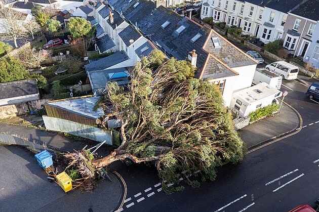 Spadlý strom ve městě St. Stephen v Cornwallu. (9. ledna 2026)