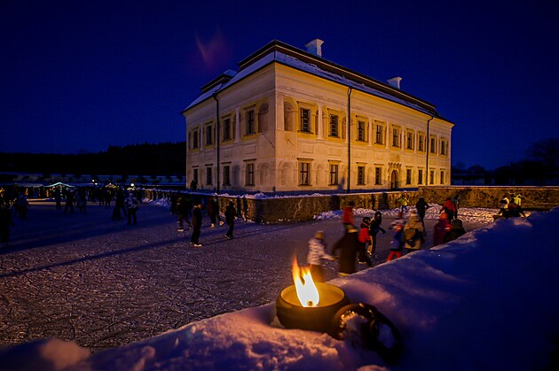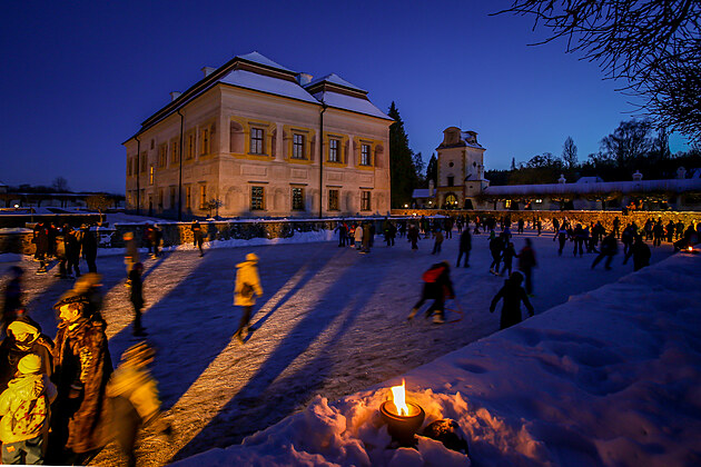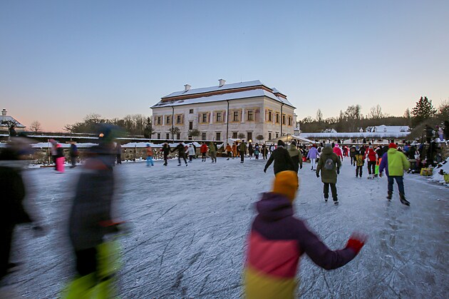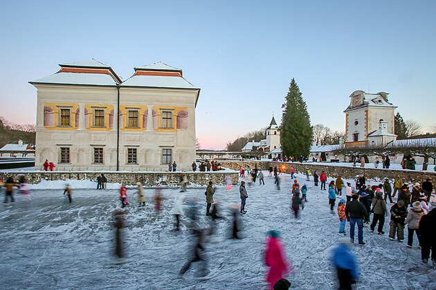 Na zámnku, renesanční italské vile, Kratochvíle u Netolic na Prachaticku v neděli uspořádali druhé speciální noční bruslení na zamrzlém vodním příkopě. Událost si nenechaly ujít stovky lidí. Pokud to počasí dovolí, bude se u zámku bruslit opět v úterý a o víkendu.