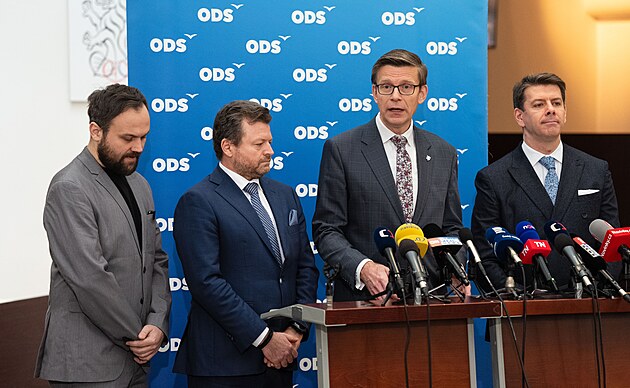 Tisková konference poslaneckého klubu ODS. Na snímku u mikrofonu Martin Kupka. (11. února 2026)