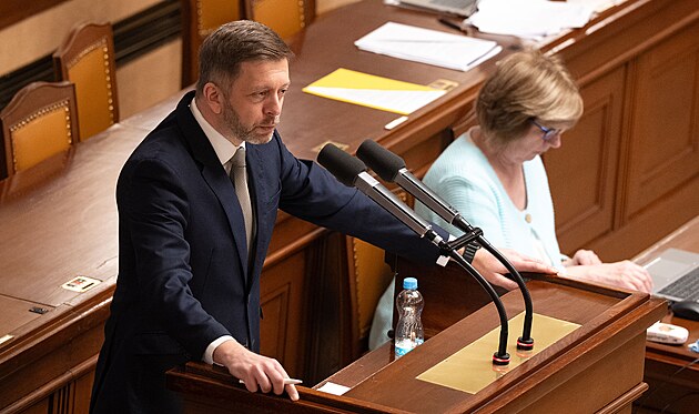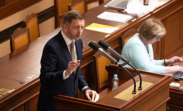 Schůze Poslanecké sněmovny. Na snímku hovoří ministr zahraničních věcí Petr Macinka (Motoristé sobě) . (11. února 2026)