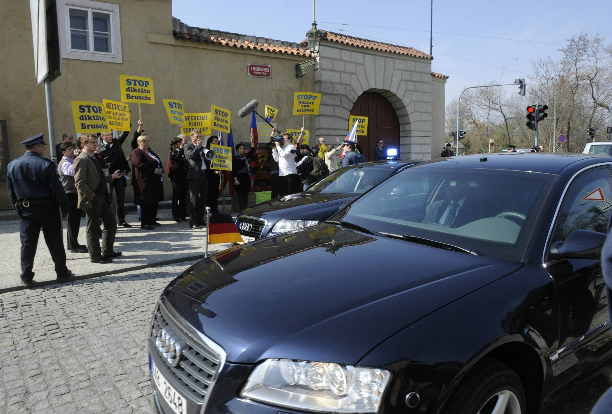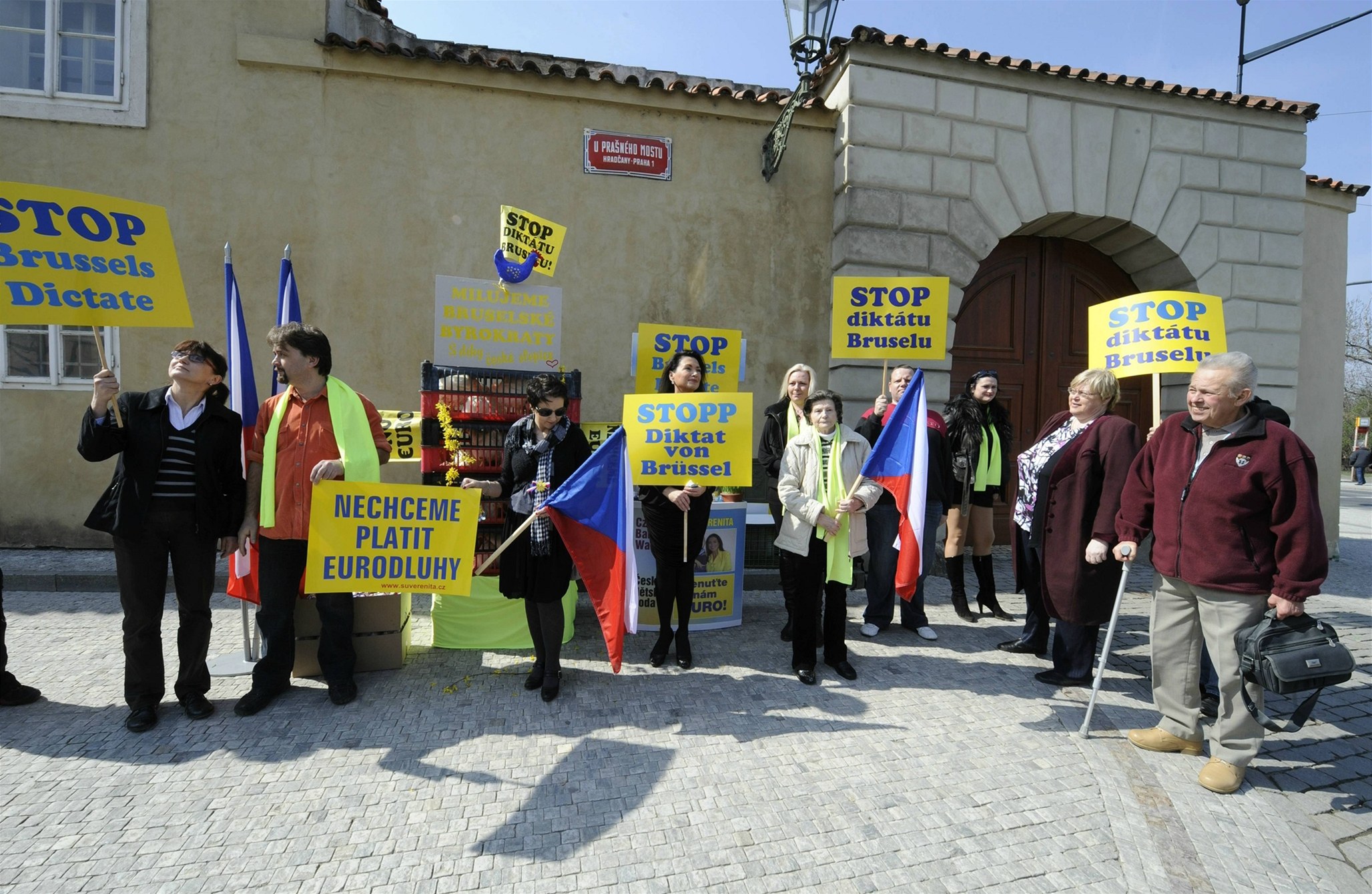 Suverenita - Blok Jany Bobošíkové protestoval v Praze proti současné politice Evropské unie. Akce se uskutečnila při příležitosti návštěvy německé kancléřky Angely Merkelové.
