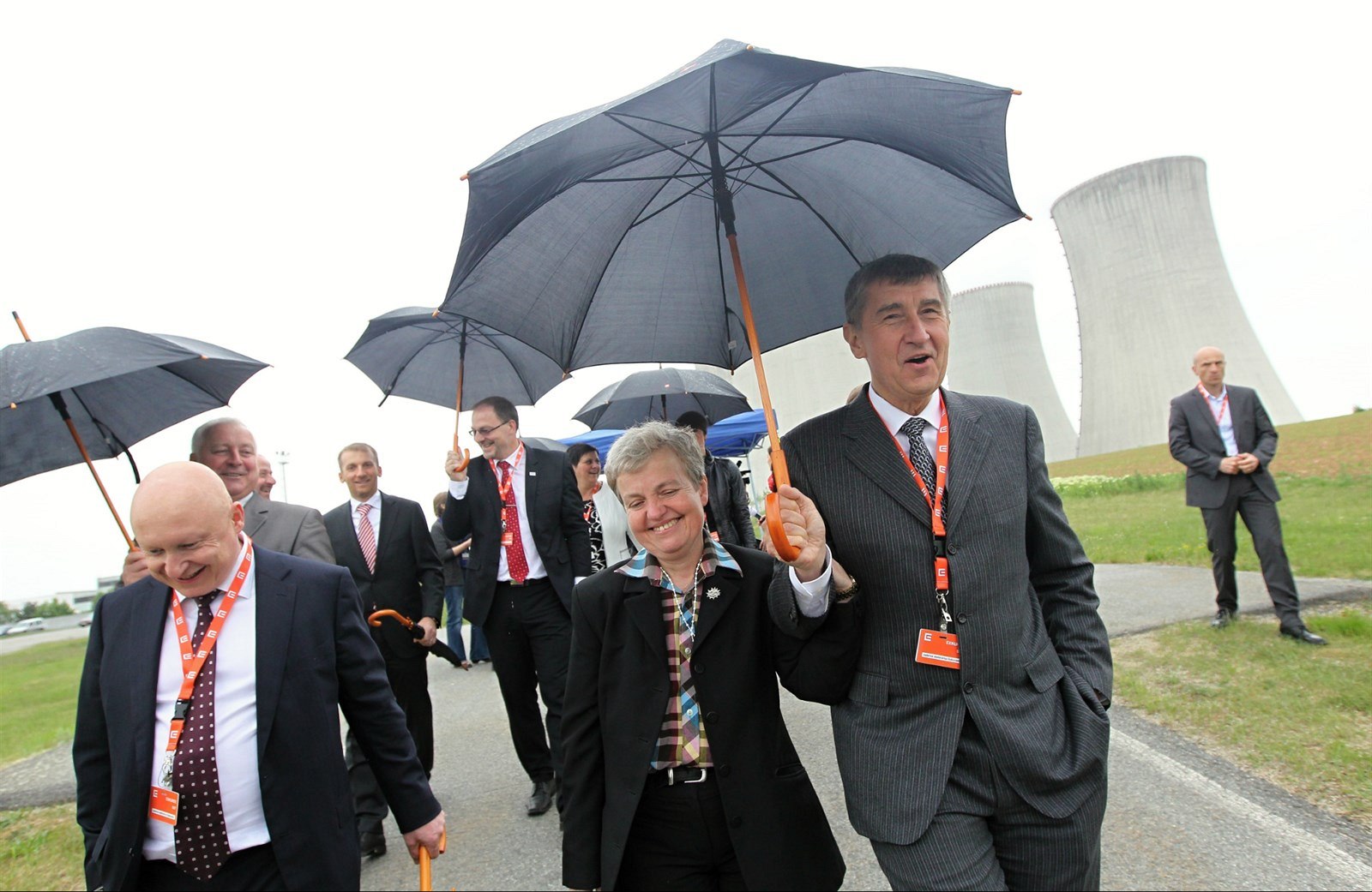 Dana Drábová a Andrej Babiš. Vlevo kráčí šéf ČEZ Daniel Beneš.