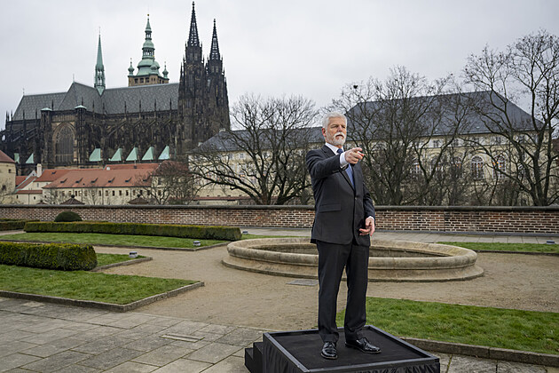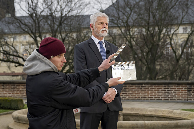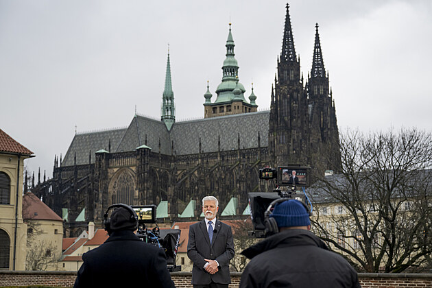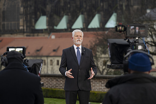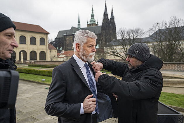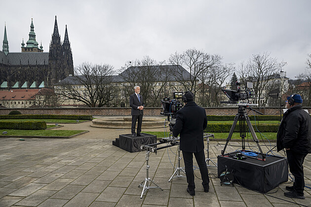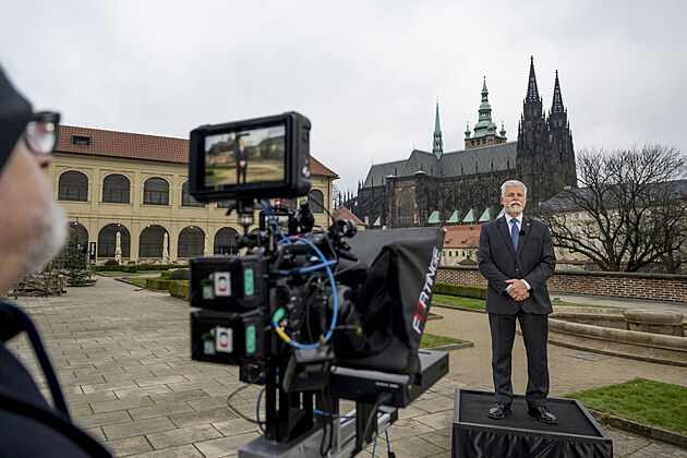Prezident Petr Pavel při natáčení svého novoročního projevu, který televize odvysílaly 1. ledna 2026.