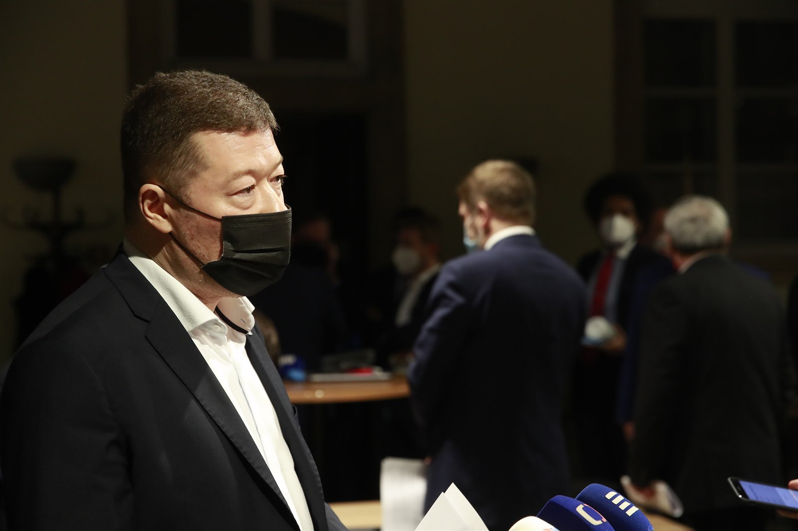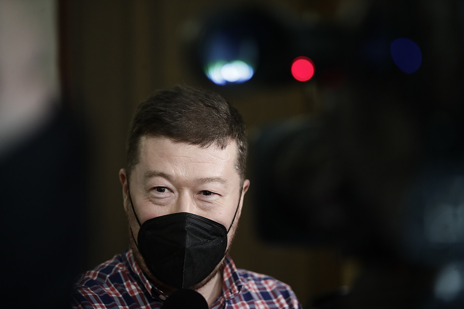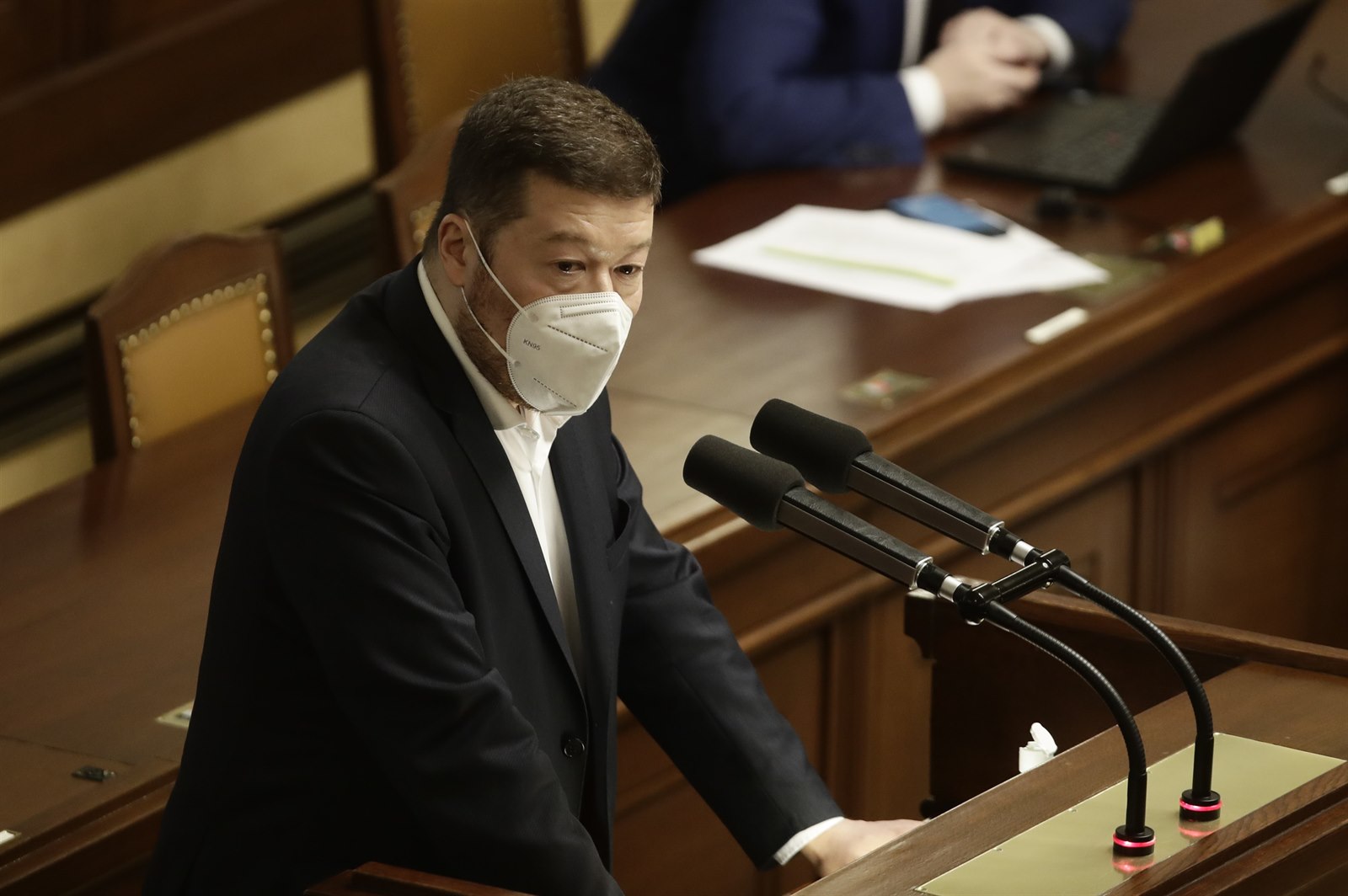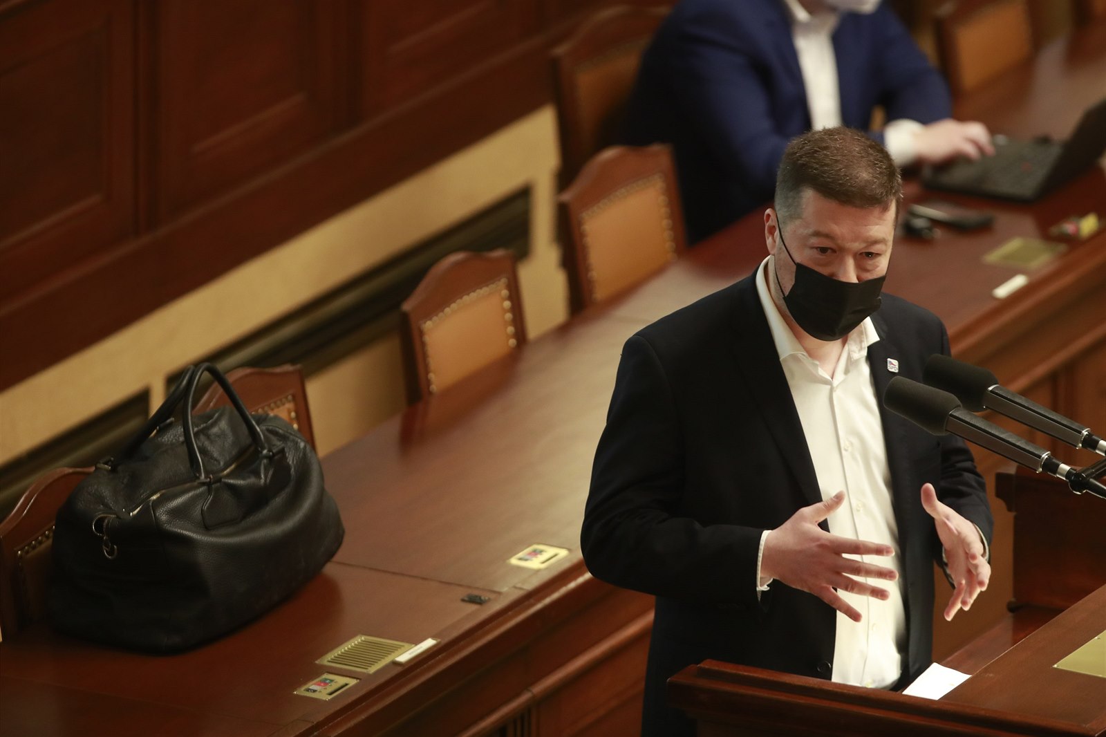 Předseda hnutí SPD Tomio Okamura během projevu ve Sněmovně.