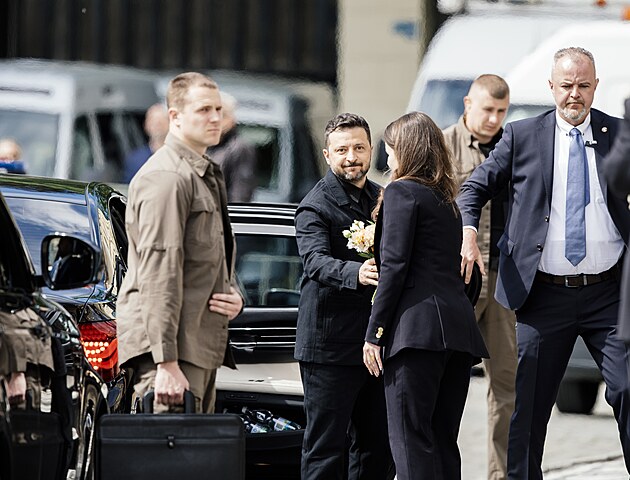 Ukrajinský prezident Volodymyr Zelenskyj je po necelých dvou letech znovu na návštěvě Česka. Na Pražském hradě ho přivítal jeho protějšek Petr Pavel s manželkou Evou. (4. května 2025)
