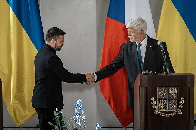 Ukrajinský prezident Volodymyr Zelenskyj je po necelých dvou letech znovu na návštěvě Česka. Na Pražském hradě ho přijal jeho protějšek Petr Pavel. (4. května 2025)