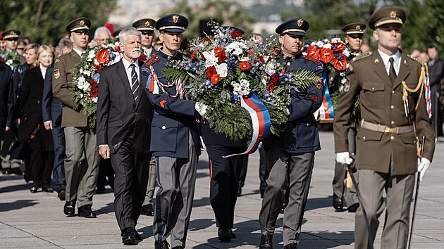 Pietní akt k 80. výročí konce druhé světové války v Praze. Národní památník na Vítkově. Na snímku prezident Petr Pavel. (8. květen 2025)