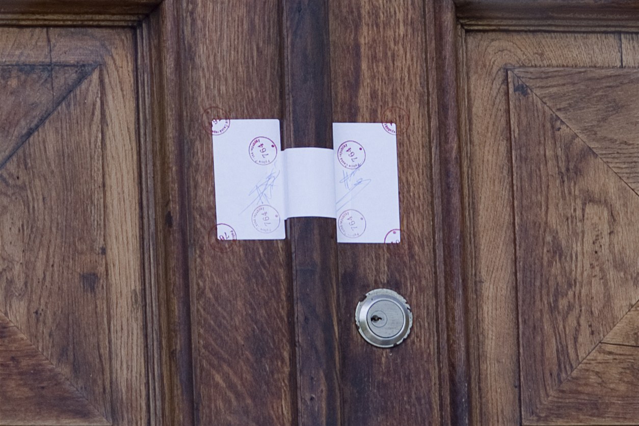 Zapečetěná vrata do areálu Rittigovy vily.