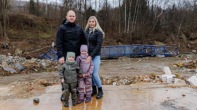 Nakonec k demolici přijela i jeho žena. „Nechtěla jsem tu být, ale zlomilo se to ve mně ve chvíli, kdy mi sestra poslala fotku babiččiny oblíbené harlekýnky, jak se válí v bahně. V tu chvíli mi došlo, že bych si to později mohla vyčítat,“ svěřuje se Iva Lukáčová, zatímco celá rodina i s dětmi pózuje na betonové základové desce. Ta je totiž tím jediným, co po jejich domově zbylo.