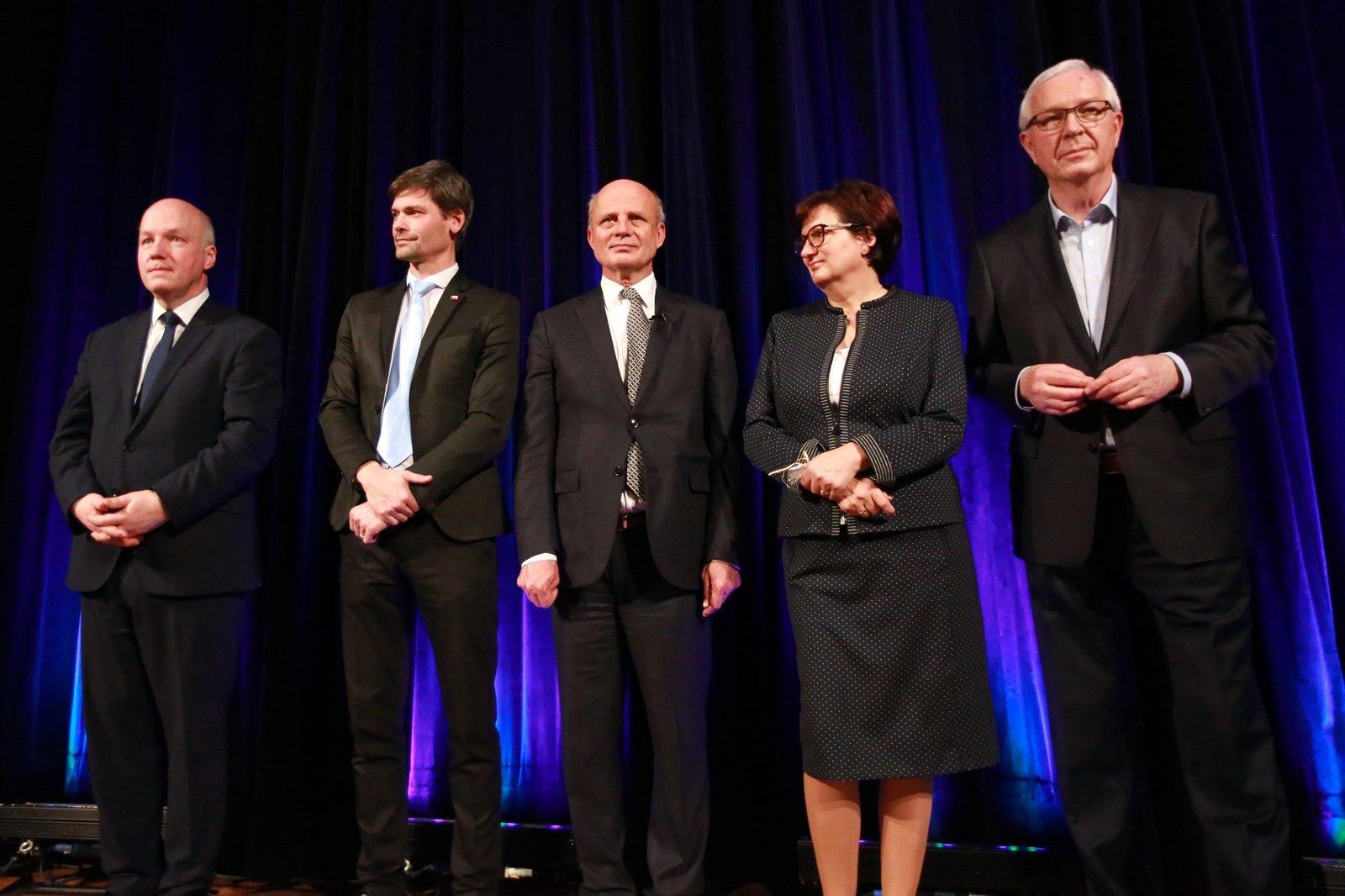 Na pódiu se Jiří Drahoš sešel poprvé po prvním kole s neúspěšnými kandidáty Michalem Horáčkem, Markem Hilšerem a Pavlem Fischerem.