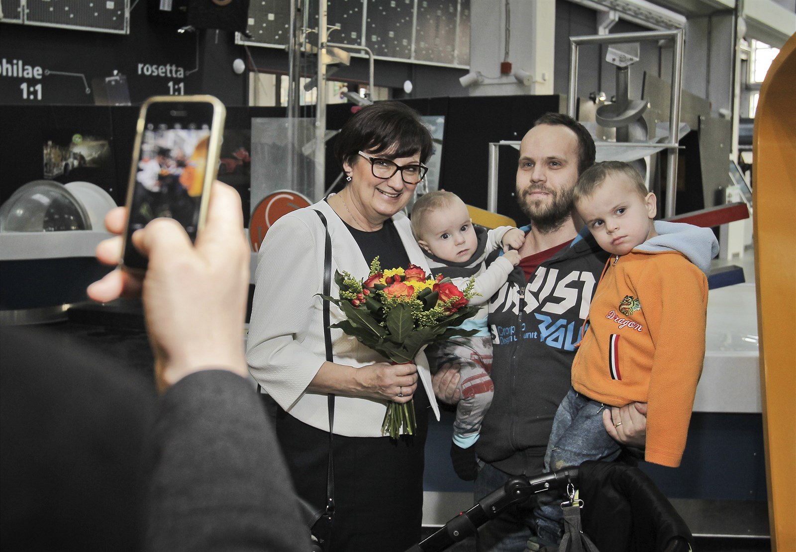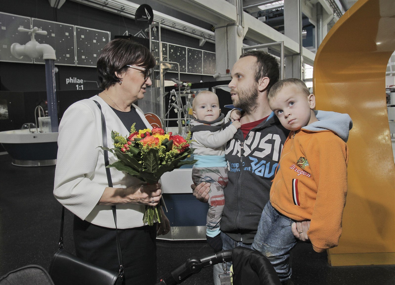Jeden z návštěvníků Techmanie popřál Evě Drahošové a jejímu muži hodně štěstí ve volbách a požádal ji o fotografii.