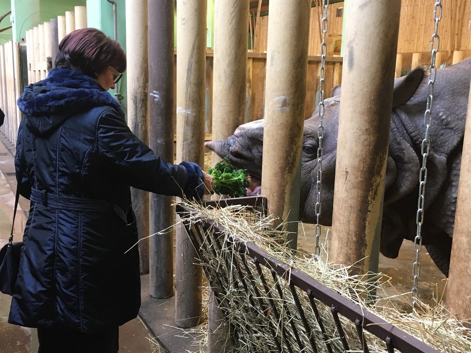 Eva Drahošová si v plzeňské zoo vyzkoušela krmení nosorožců.