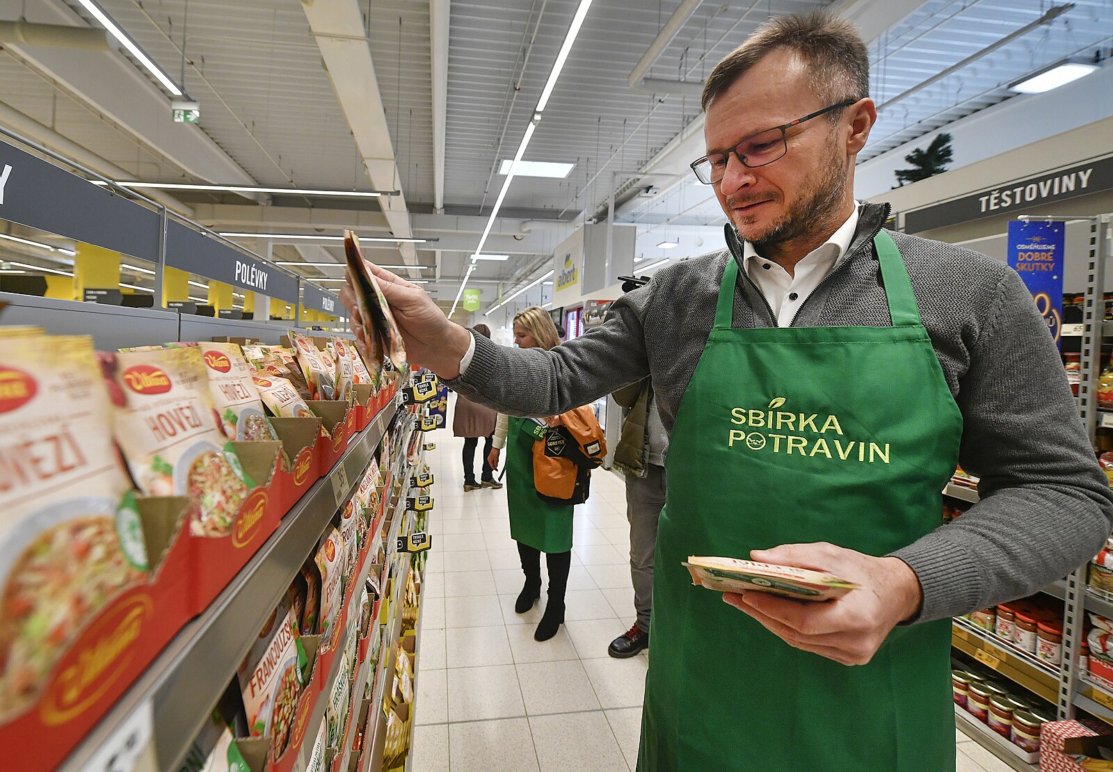 V sobotu probíhá podzimní kolo potravinové sbírky. Ve Znojmu se jí zúčastnil i ministr zemědělství Zdeněk Nekula. (12. listopadu 2022)