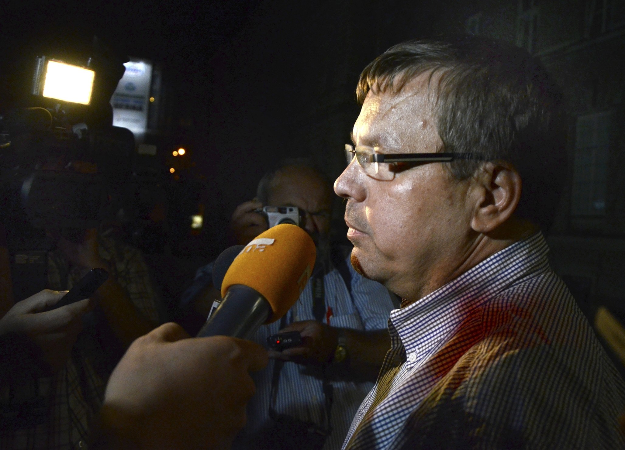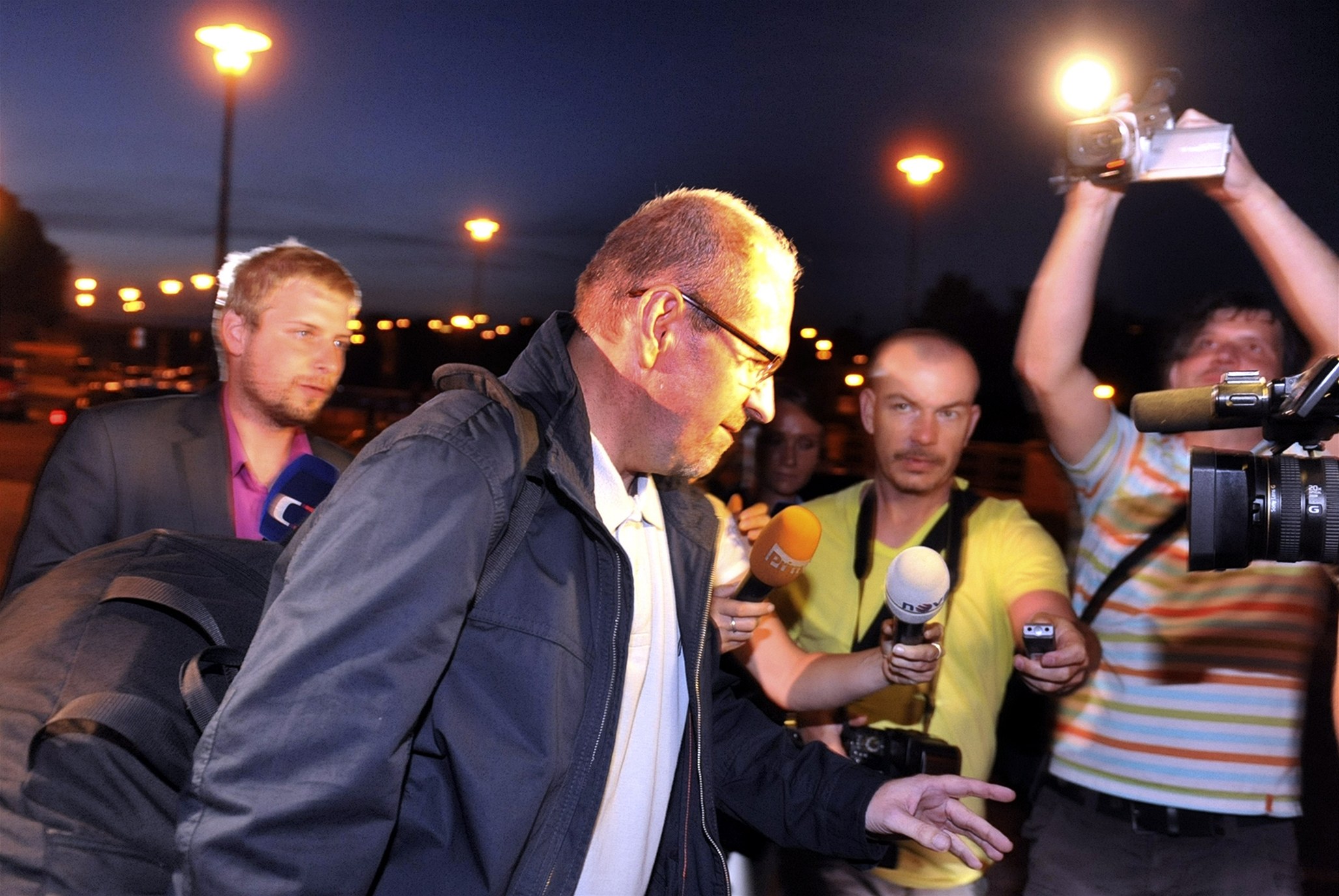Marek Šnajdr mezi novináři po propuštění z ostravské vazební věznice