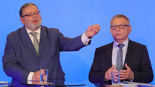 Bývalí ministři a dlouholetí oponenti Alexandr Vondra (ODS) a Lubomír Zaorálek (Socdem – strana, která se dříve jmenovala ČSSD) se nyní opět střetávají. Děje se tak v předvolebních diskuzích, neboť oba jsou lídry kandidátních listin svých subjektů. Vondra vede ODS v rámci koalice Spolu. Na snímku debata pořádaná portálem iDNES.cz.