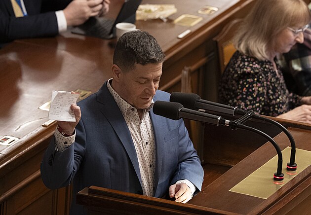 Mimořádná schůze Poslanecké sněmovny. Na snímku Marek Výborný (KDU-ČSL). (29. ledna 2026)