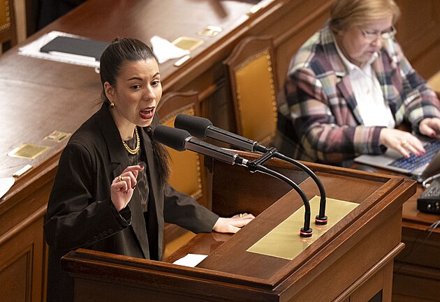 Mimořádná schůze Poslanecké sněmovny. Na snímku Kateřina Stojanová (Piráti). (29. ledna 2026)