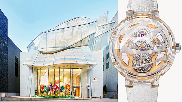 Značka Louis Vuitton nedávno uvedla unikátní safírový kus Tambour Moon Flying Tourbillon Poinçon de Genève Sapphire Frank Gehry. Jak vypovídá předlouhý název, hodinky navrhl Frank Gehry, s nímž firma pravidelně spolupracuje i na flakonech vůní či kabelkách. Navíc je autorem slavné pařížské budovy z roku 2014 Fondation Louis Vuitton. Design průhledného číselníku s matnými pruhy inspiroval Gehryho Maison Louis Vuitton v jihokorejském Soulu.