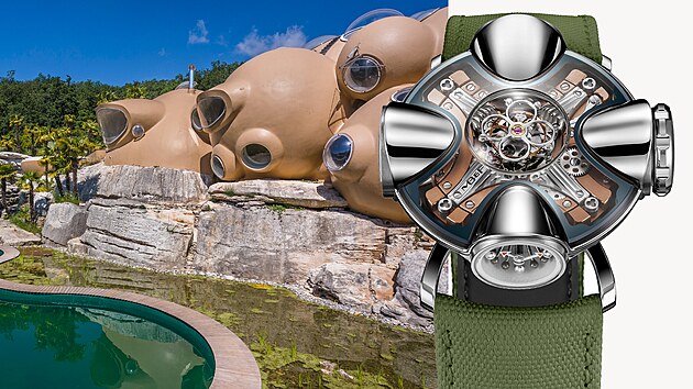 Slyšeli jste už o maďarském architektovi, habitologovi Anttim Lovagovi? V roce 1989 navrhl dům v jižní Francii, který svým tvarem připomíná bublinky vyfouknuté z bublifuku. Jeho dílo zaujalo zakladatele nezávislé značky MB&F Maximiliana Büssera. Jeho loňský titanový model HM11 Architect se skládá ze čtyř modulů – jeden ukazuje čas, druhý rezervu chodu, třetí skrývá mechanický teploměr a ve čtvrtém je ukryta korunka pro nastavení času. Střed hodinek neboli atrium pomyslné stavby zabírá tourbillon.