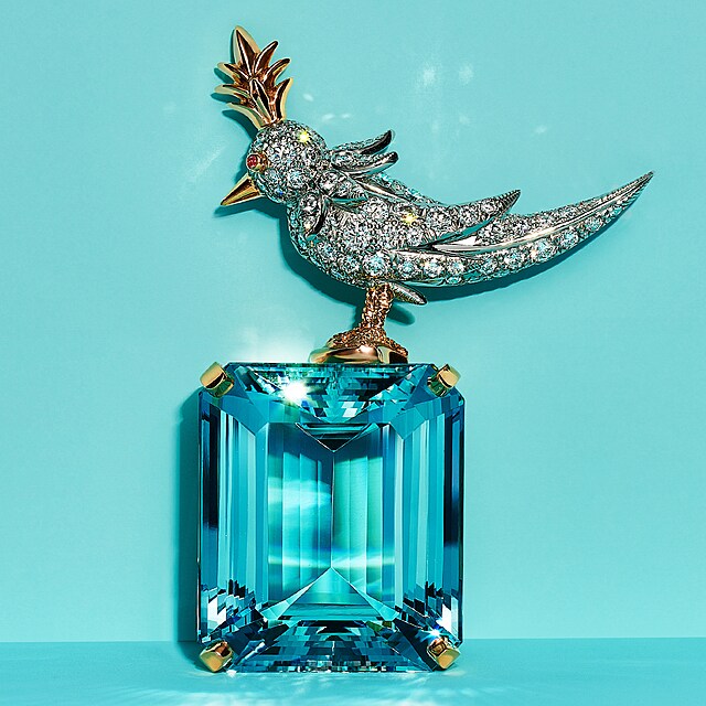 Značka Tiffany & Co. letos představila nádherné šperkové hodinky inspirované broží Jeana Schlumbergera. Model Bird on a Flying Tourbillon, jehož strojek vytvořila švýcarská manufaktura Artime Créations SA přímo pro šperkařského giganta, je vyroben z bílého zlata, zdobí jej 848 diamantů a tyrkysová marketerie.
