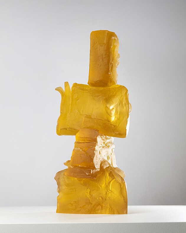 Plastiky, vytvořené mimo jiné z unikátní směsi drceného skla, svou texturou evokují pískovec, čímž umělec vytváří působivý kontrast mezi tradičním sochařským materiálem a současným trendem cirkulační ekonomiky.