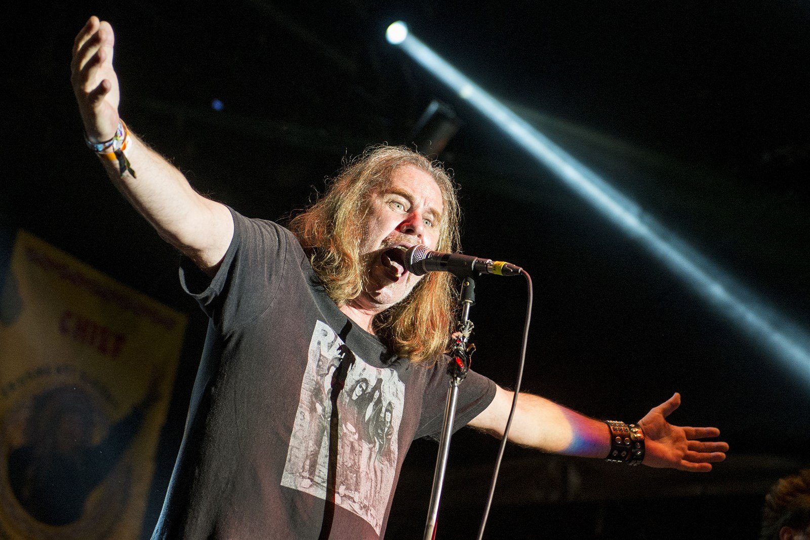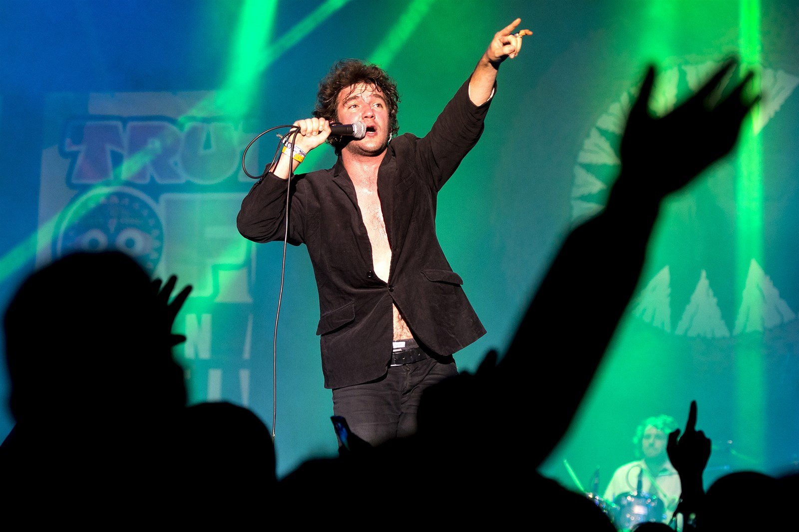 Zpěvák Jan Haubert z české skupiny Visací zámek na festivalu Trutnoff Open Air.
