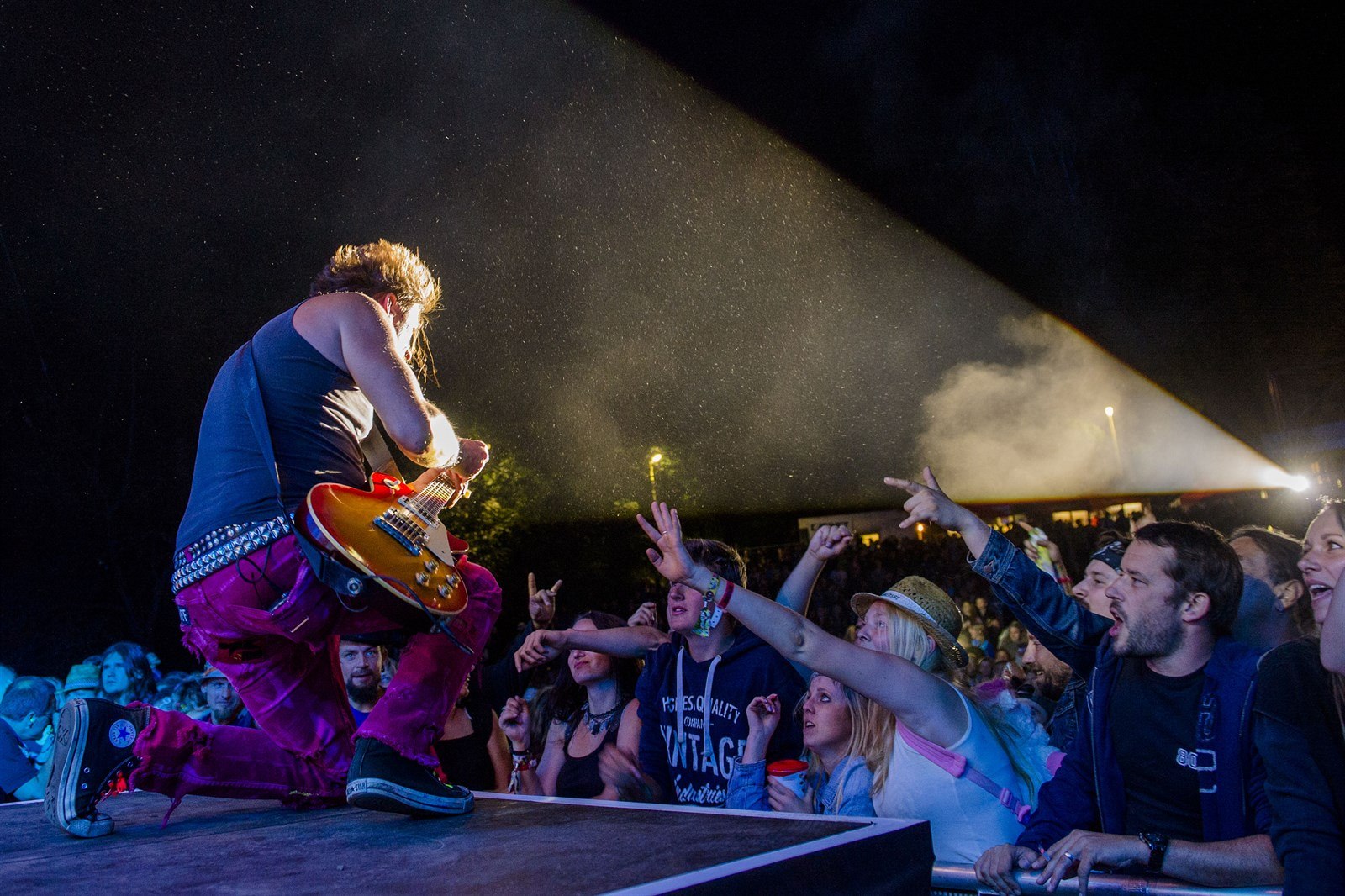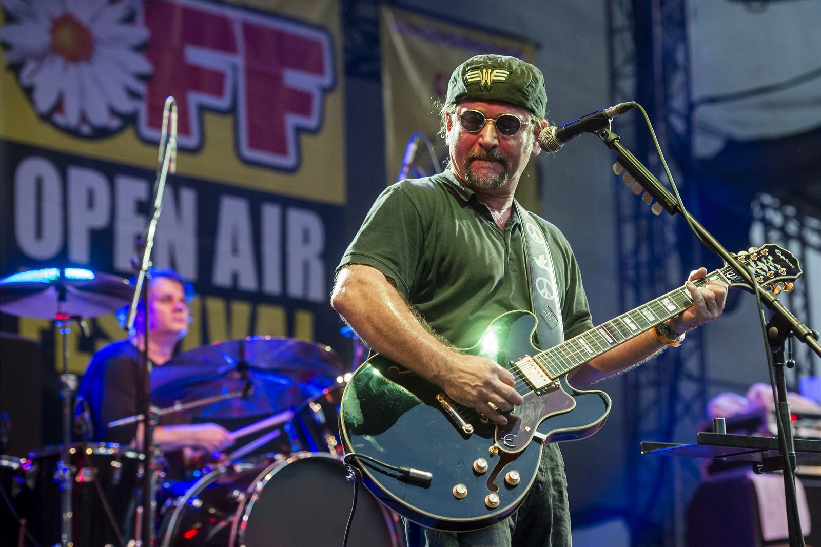 Kytarista Michal Pixa z české skupiny Visací zámek na festivalu Trutnoff Open Air.