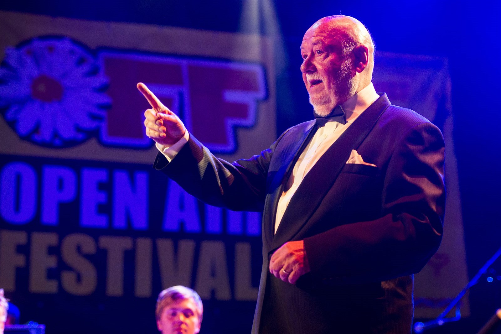 V trutnovském amfiteátru Na Bojišti pokračoval 20. srpna hudební festival Trutnoff Open Air. Na snímku je Václav Hybš s orchestrem.