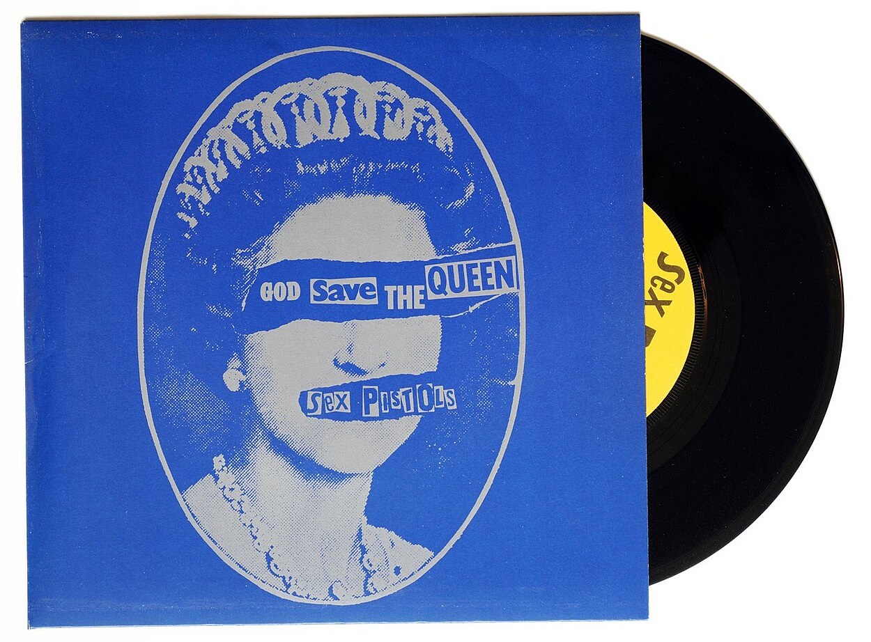 Originální obal singlu God Save the Queen (1977) od punkových Sex Pistols