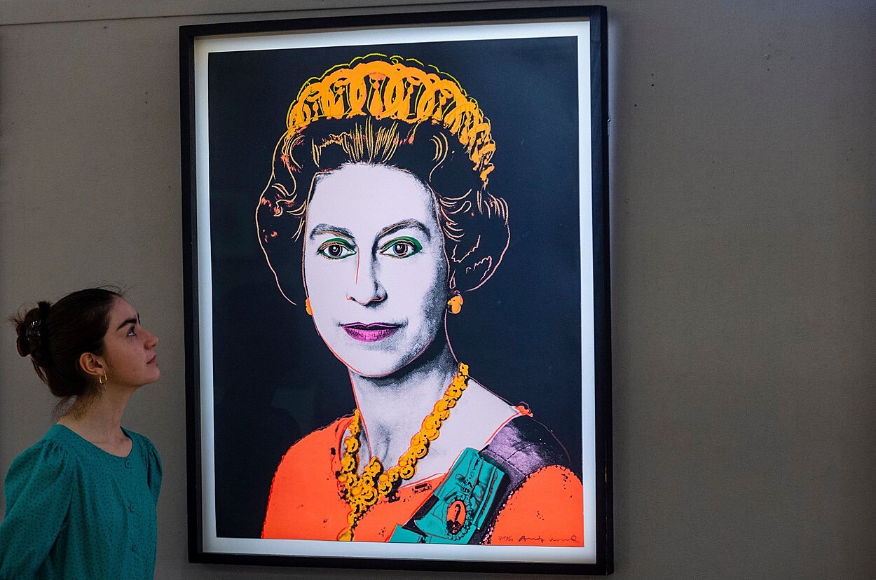 Portrét královny Alžběty II. od Andyho Warhola v rámci jeho série Reigning Queens (1985).