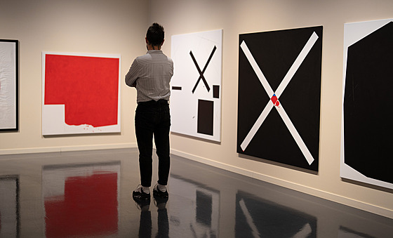 Instalace čítající přes dvacet prací má magickou atmosféru a je ukázkou výtvarných schopností Květy Pacovské a jejího citu pro barvy. Na bílém podkladě vynikají linie v královské červené, přitažlivá je kombinace zelené se žlutou. Ovšem i barevně umírněná variace s černou působí živě.