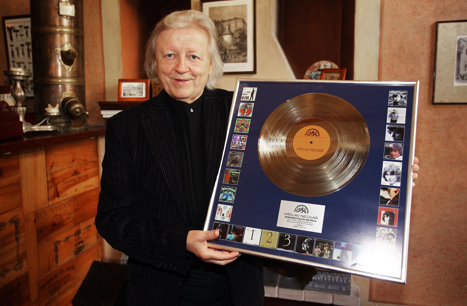 Václav Neckář převzal od Supraphonu diamantovou desku za 7 600 700 prodaných nosičů (24. října 2013).