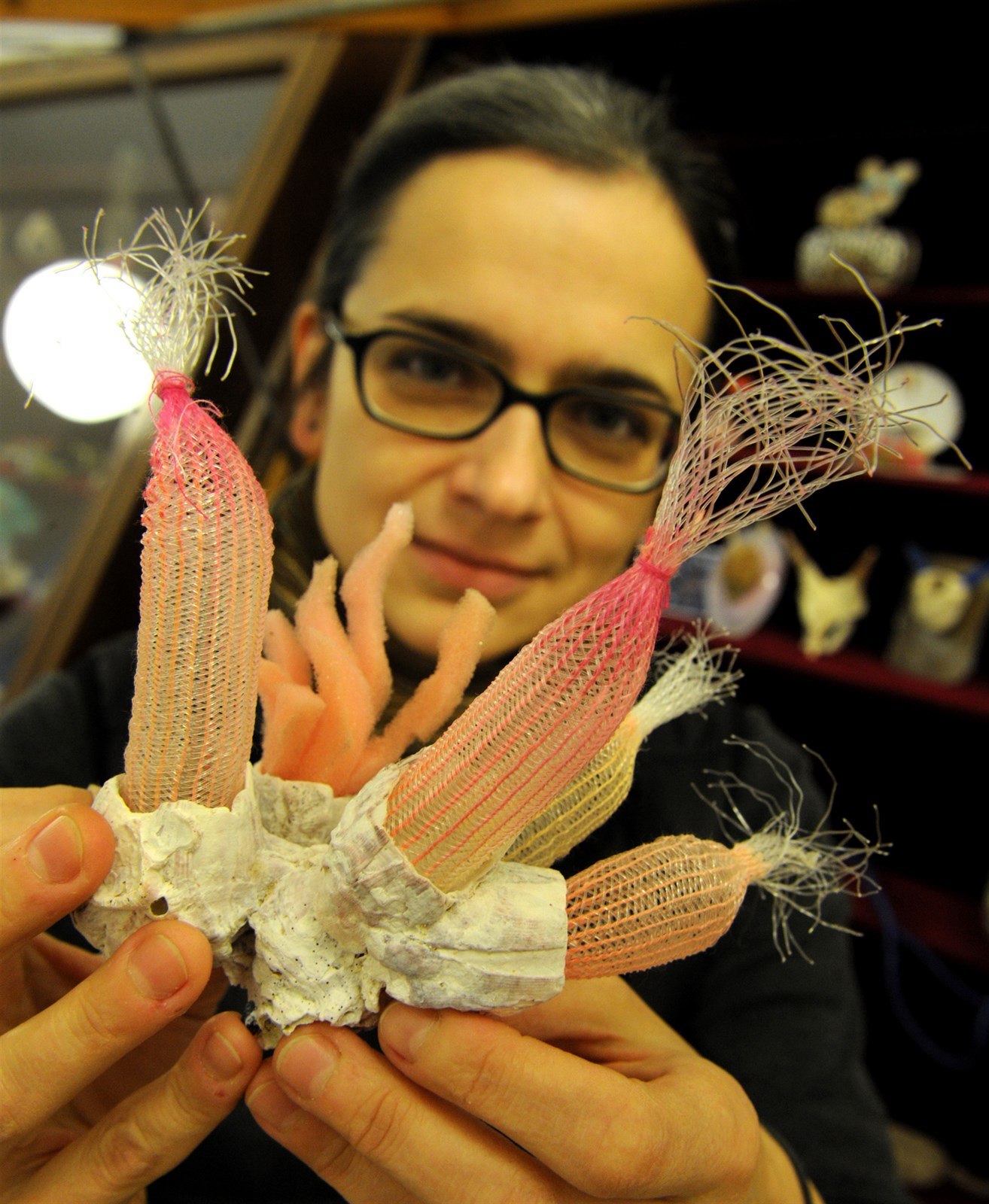 Geoložka Městského muzea v Ústí nad Labem Zuzana Vařilová ukazuje zmutovanou sasanku... Z expozice Dary moře.