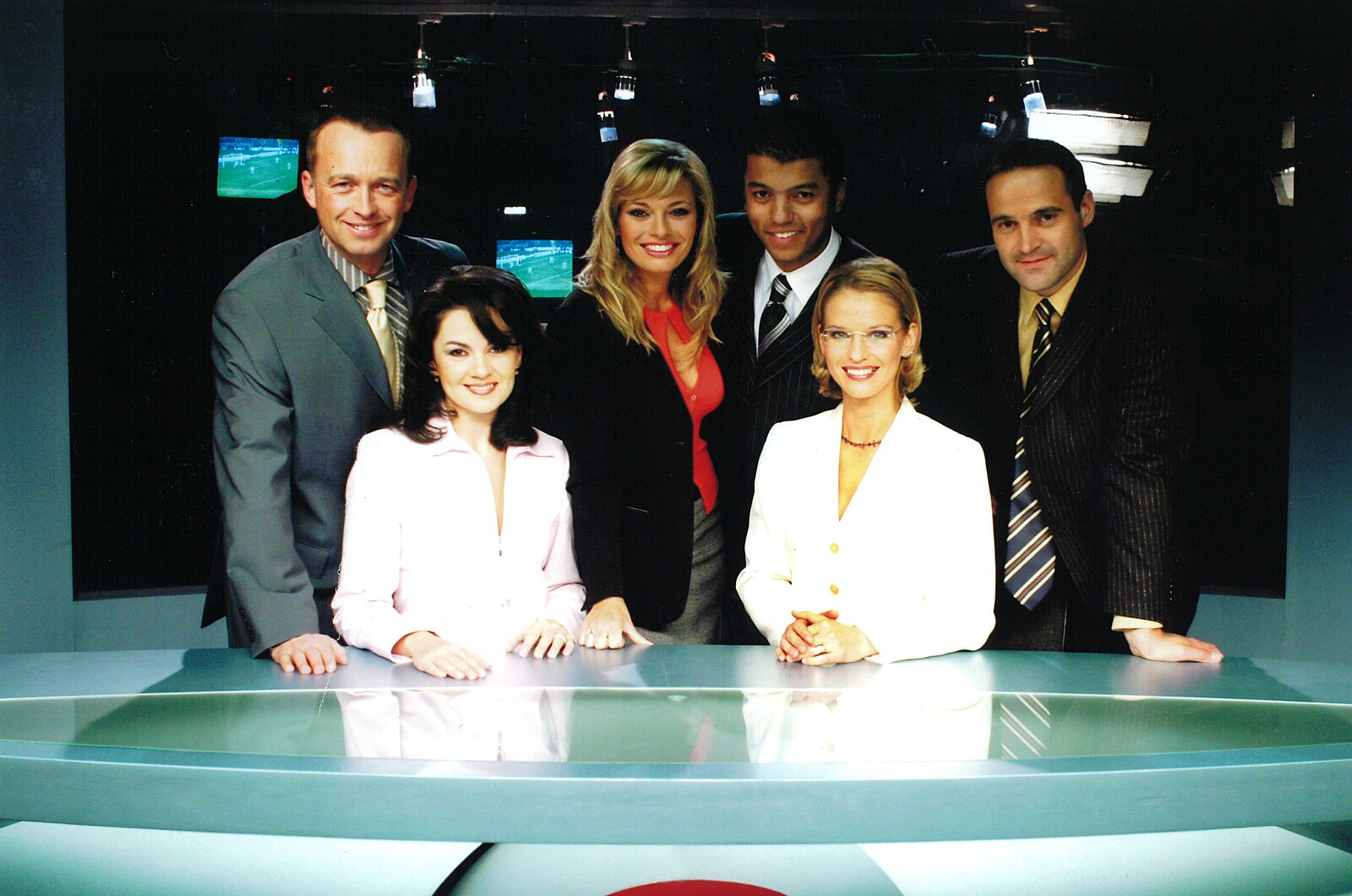 Karel Voříšek, Jana Adámková, Lucie Borhyová a Rey Koranteng, Pavla Charvátová a Pavel Zuna v Televizních novinách