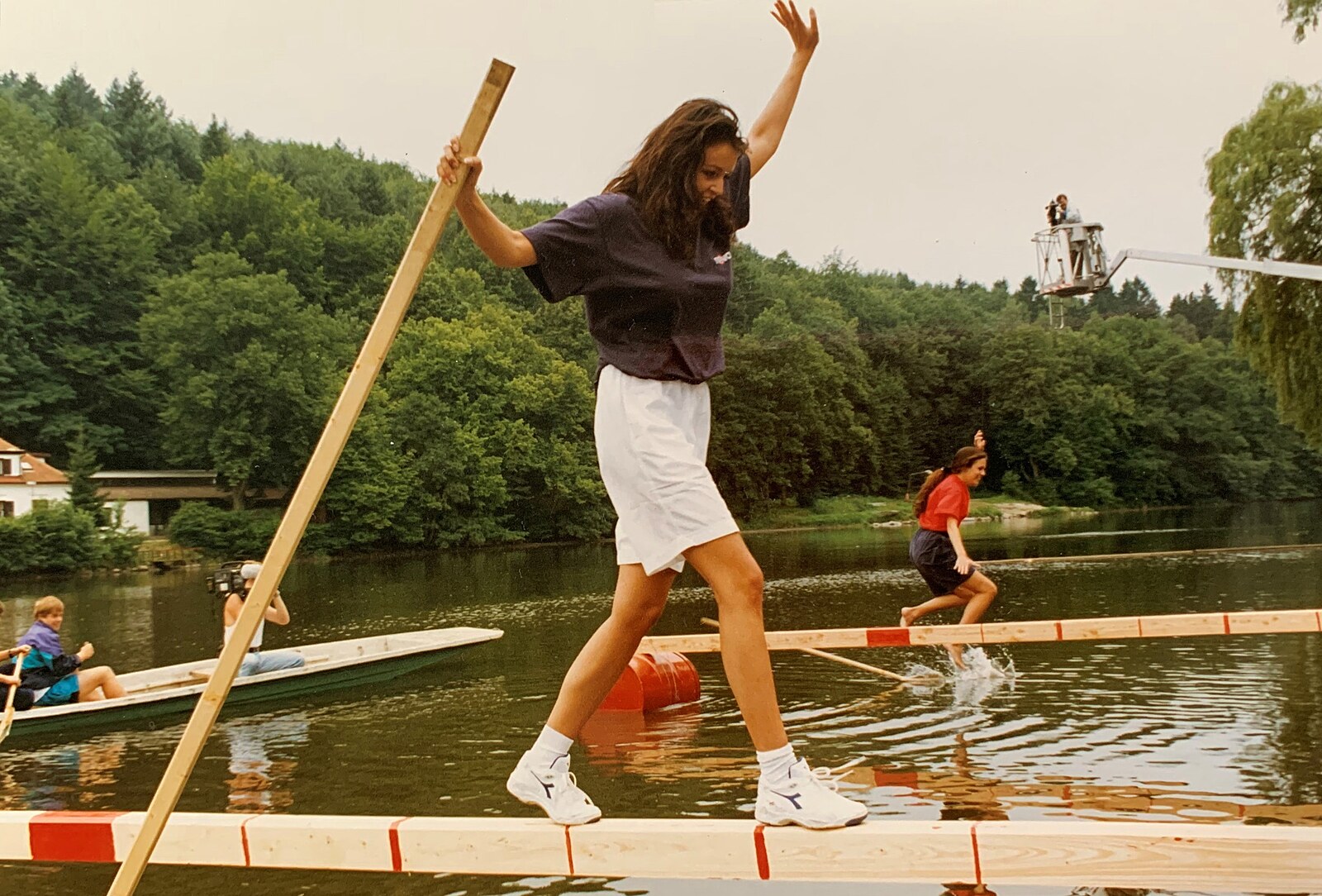 Kateřina Neumannová a Jaromír Jágr v pořadu Český bodyguard (1996)