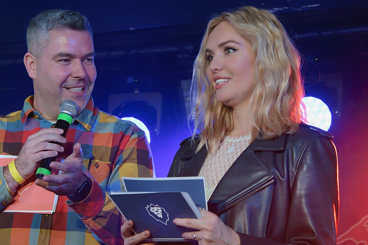 Ondřej Vodný a Taťána Kuchařová coby moderátoři setkání podporovatelů Petra Pavla v prezidentské kampani (Praha, 9. ledna 2023)