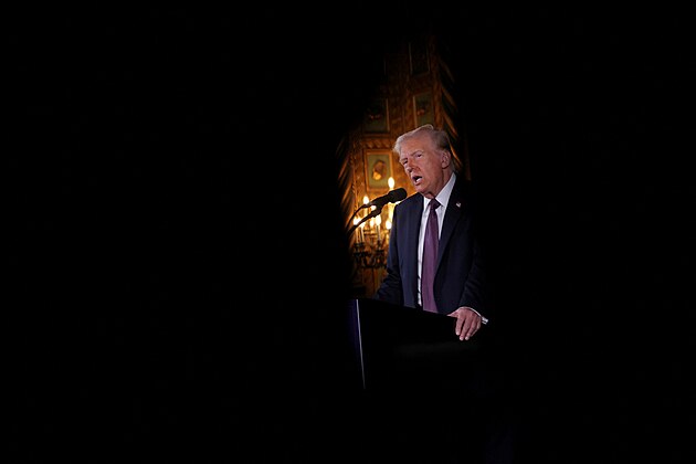 Nastupující americký prezident Donald Trump během tiskové konference ve svém floridském sídle Mar-a-Lago (7. ledna 2025)