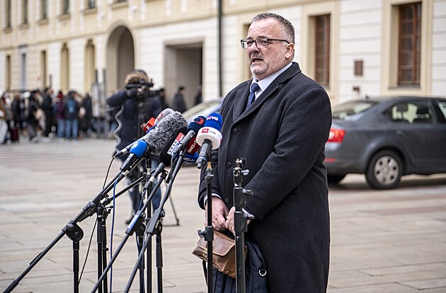 Ivan Bednárik (SPD) odchází po konzultacích s prezidentem Petrem Pavlem. (2. prosince 2025)