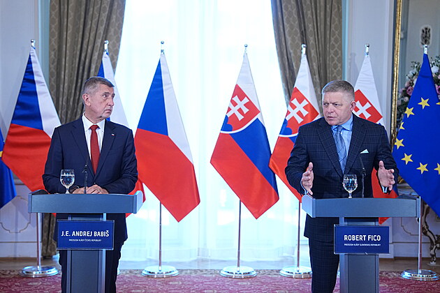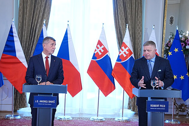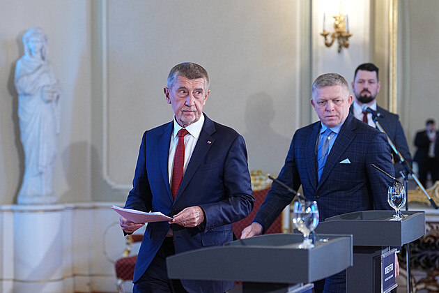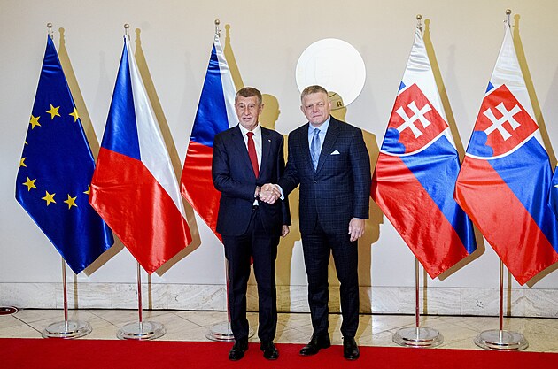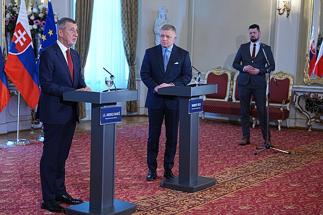 Společná tisková konference premiérů České republiky Andreje Babiše a Slovenské republiky Roberta Fica. (8. ledna 2026)