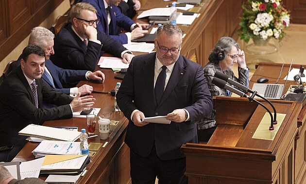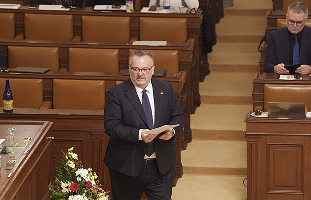 Ministr dopravy Ivan Bednárik před hlasováním o důvěře vládě (13. ledna 2026)