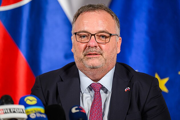 Český ministr dopravy Ivan Bednárik během tiskové konference o vysokorychlostní železniční trati v Bratislavě. (21. ledna 2026)