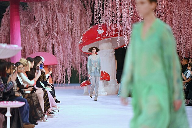 První haute coutre přehlídka nového návrháře Chanel. Matthieu Blaze proměnil molo ve snový les plný obřích hub a za zpěvu ptáků vyslal na přehlídku nejen mladé modelky, ale i ženy, které už nosí šediny.