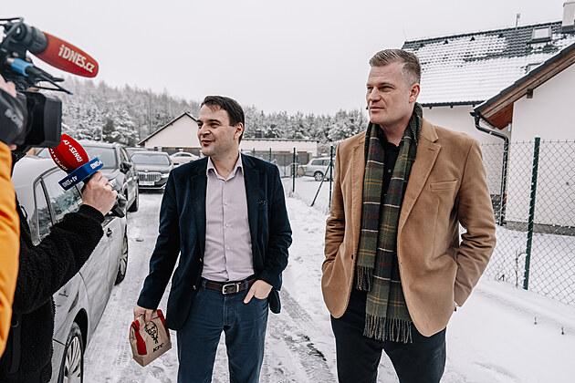 Filip Turek a Petr Macinka dorazili do Lán, kde se sejdou s Milošem Zemanem. (31. ledna 2026)