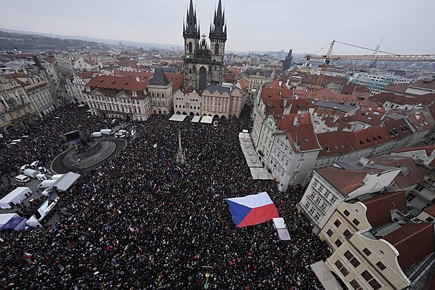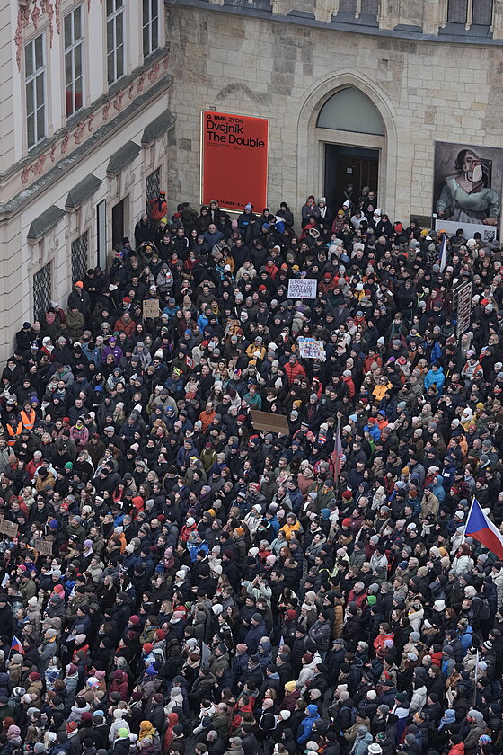 Milion chvilek pořádá v centru Prahy demonstraci na podporu prezidenta Petra Pavla. (1. února 202)