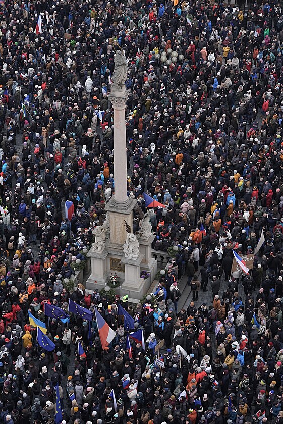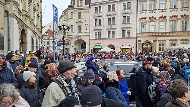 Demonstrace v centru Prahy na podporu prezidenta Petra Pavla, kterou svolal spolek Milion chvilek pro demokracii (1. února 2026)