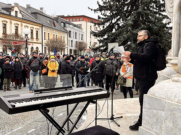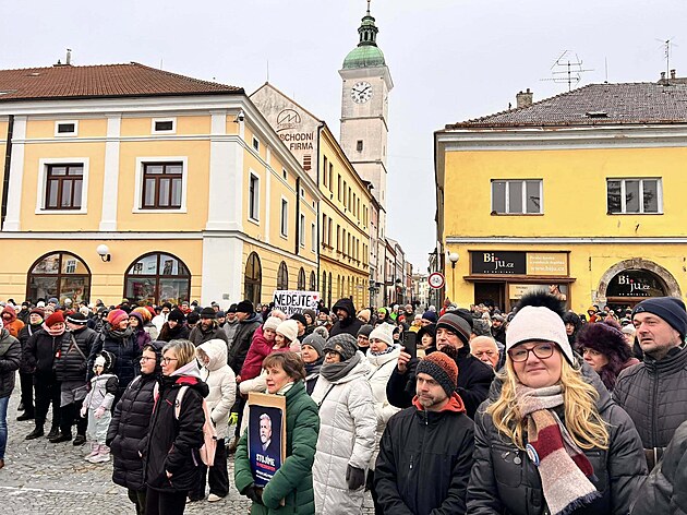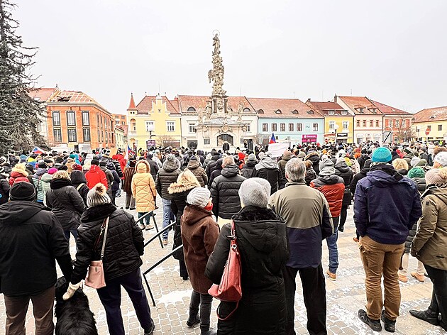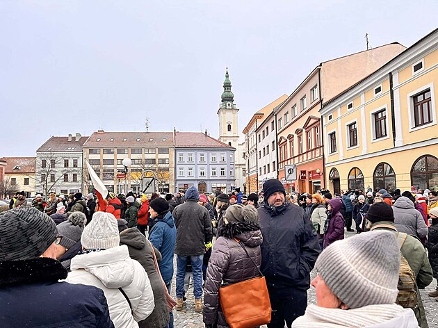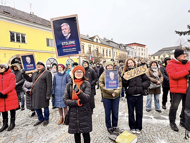 Shromáždění na podporu prezidenta Petra Pavla se konalo také na náměstí v Uherském Hradišti, kam dorazily stovky lidí. (1. února 2026)