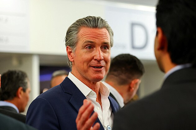 Kalifornský guvernér Gavin Newsom na Světovém ekonomickém fóru ve výcarském Davosu (20. ledna 2026)
